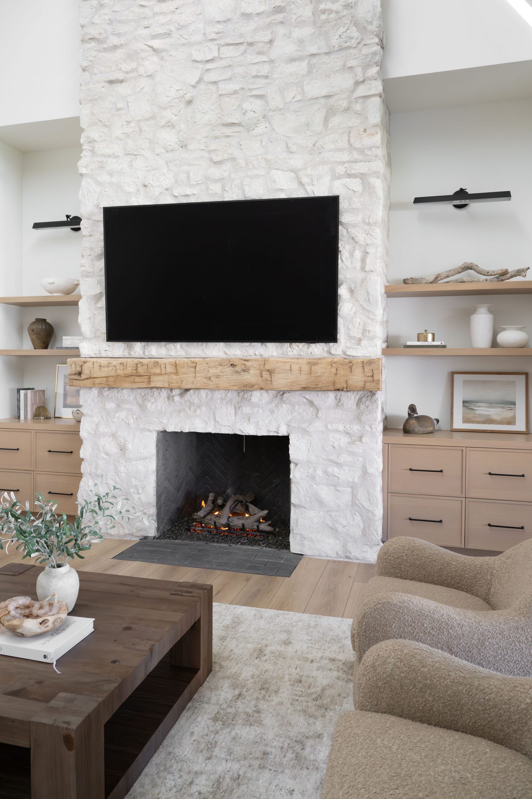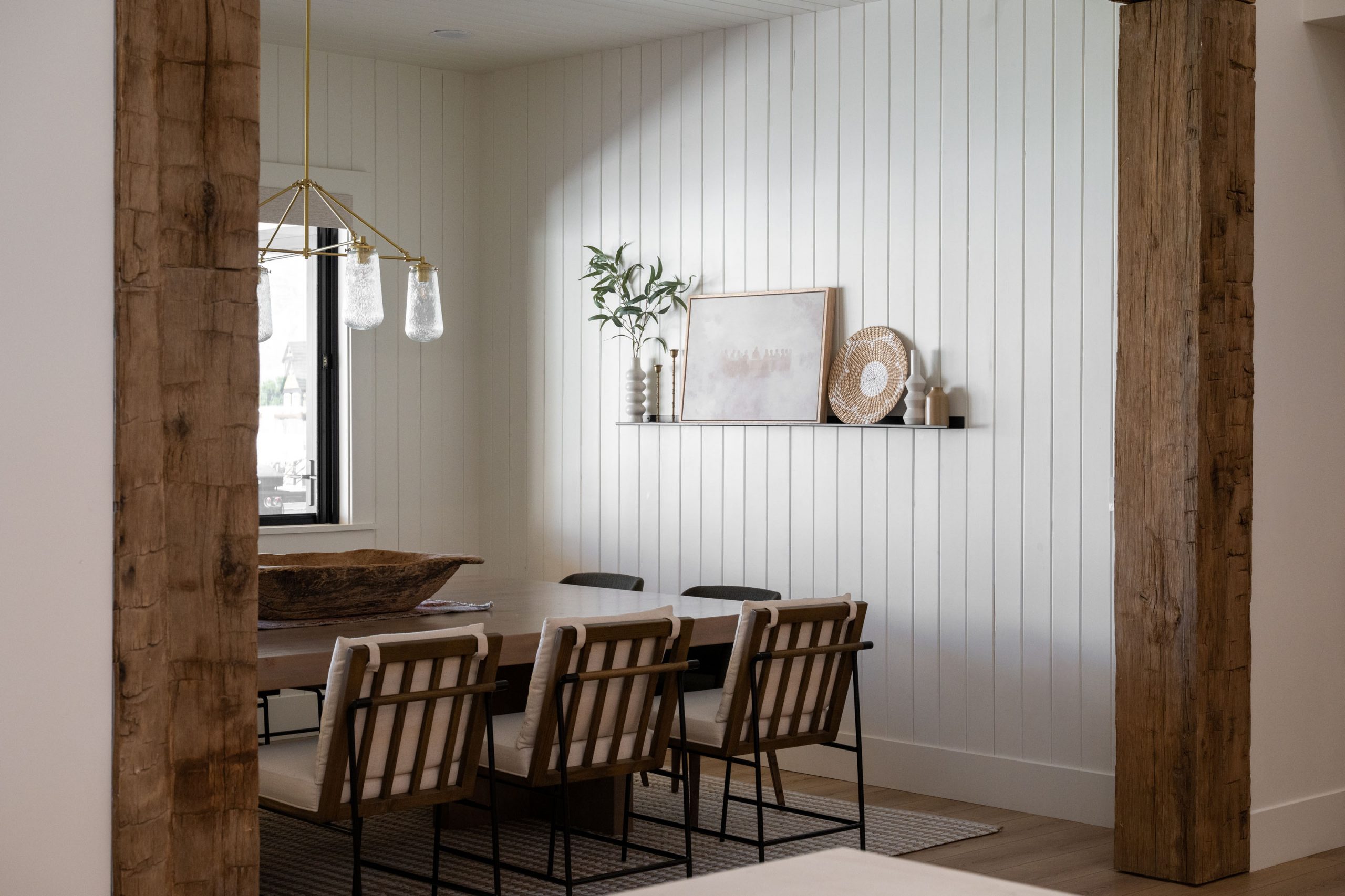 The reclaimed beams throughout the home are authentic and were shipped from out of state. The client wanted real aged wood for the raw, textured character that cannot be replicated with manufactured alternatives.