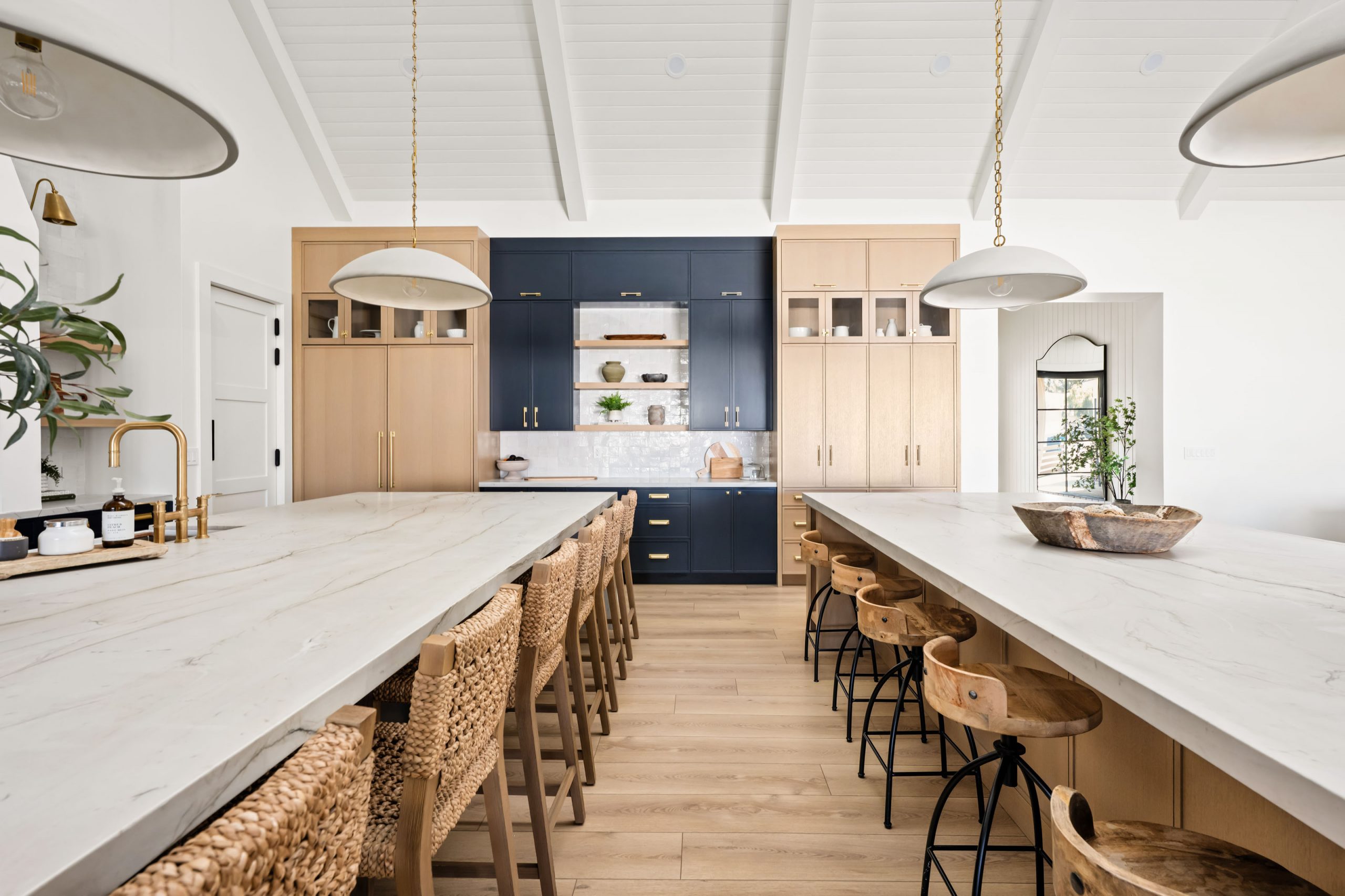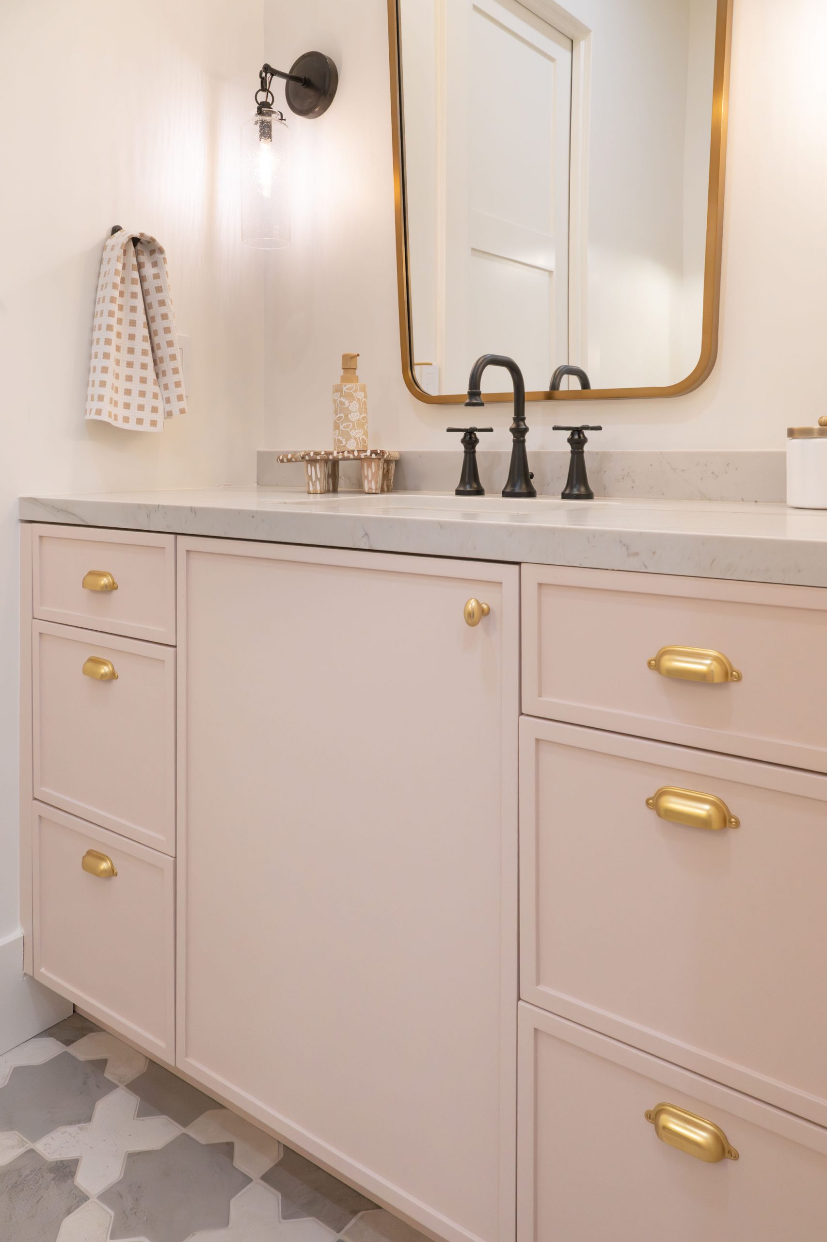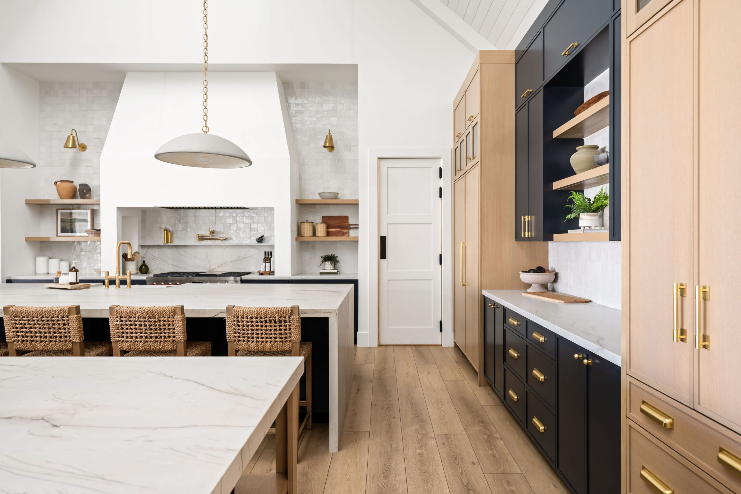 A mixture of metal finishes in the plumbing, lighting, and hardware adds interest and dimension across the home. Rather than matching every fixture to one finish, the design intentionally layers metals to give each space its own character while staying within a cohesive palette.
