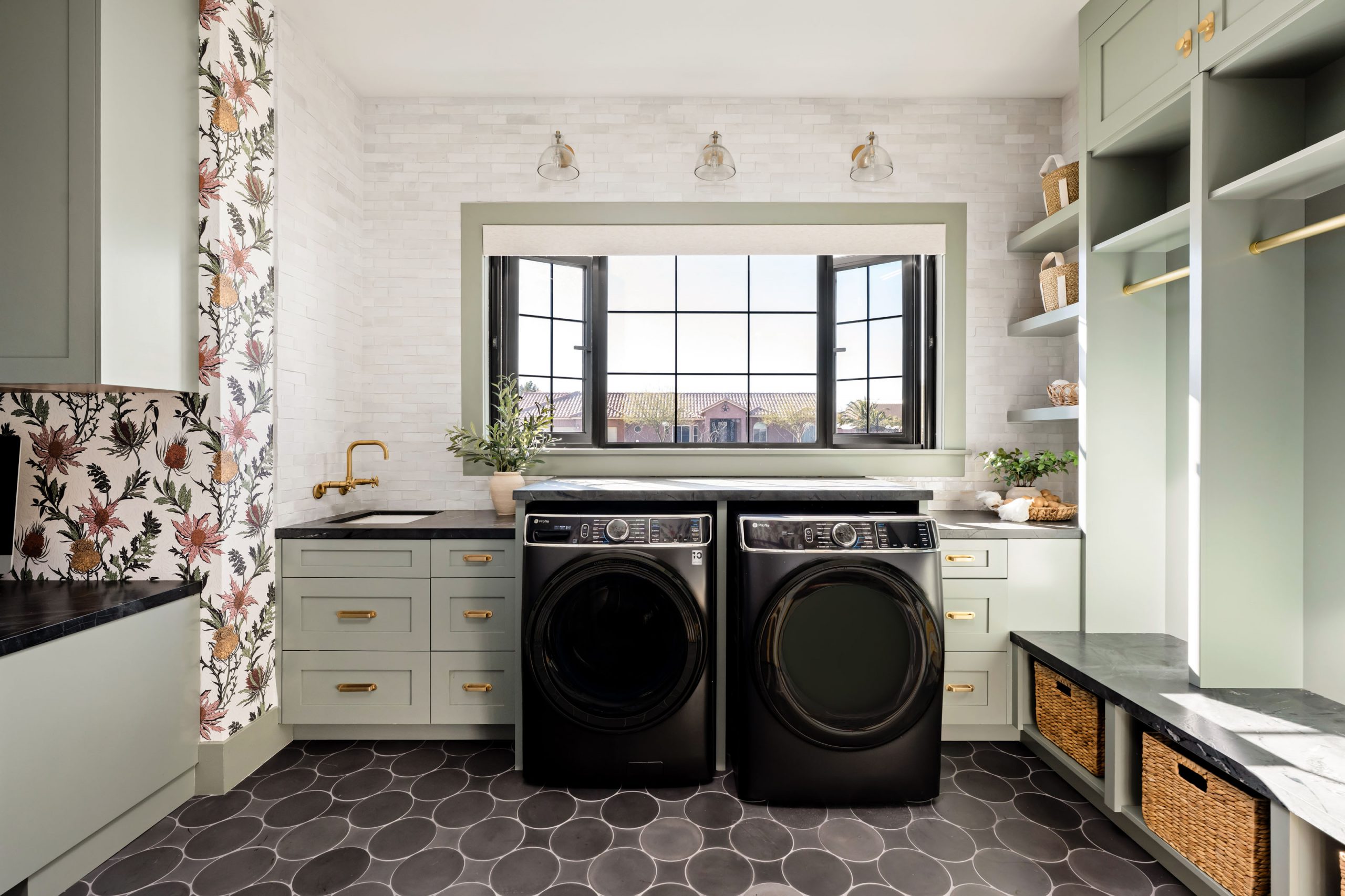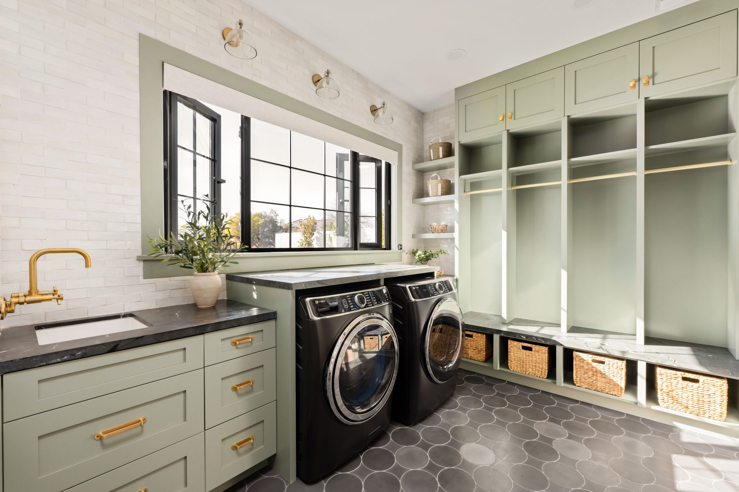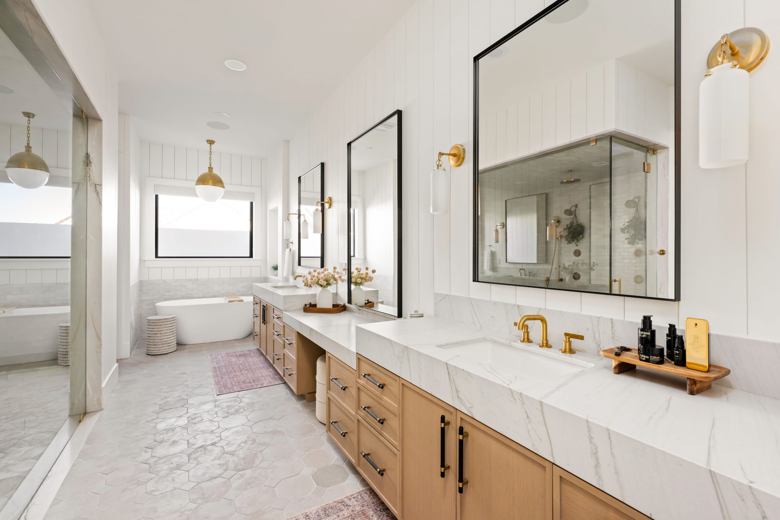 A mixture of metal finishes in the plumbing, lighting, and hardware adds interest and dimension across the home. Rather than matching every fixture to one finish, the design intentionally layers metals to give each space its own character while staying within a cohesive palette.