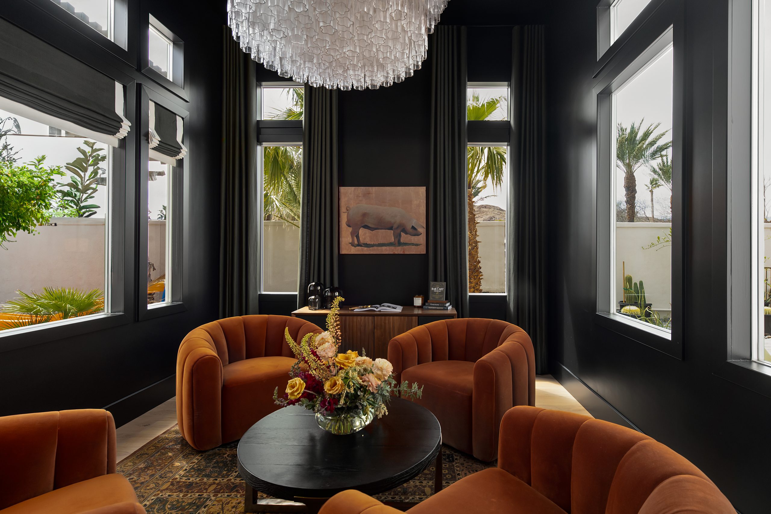 Perhaps the boldest moment in this renovation was the conversion of a formal playroom into a moody, speakeasy-style bar. Rich textures, dramatic lighting, and tailored finishes turn this tucked-away space into an unforgettable experience: equal parts unexpected and unforgettable.