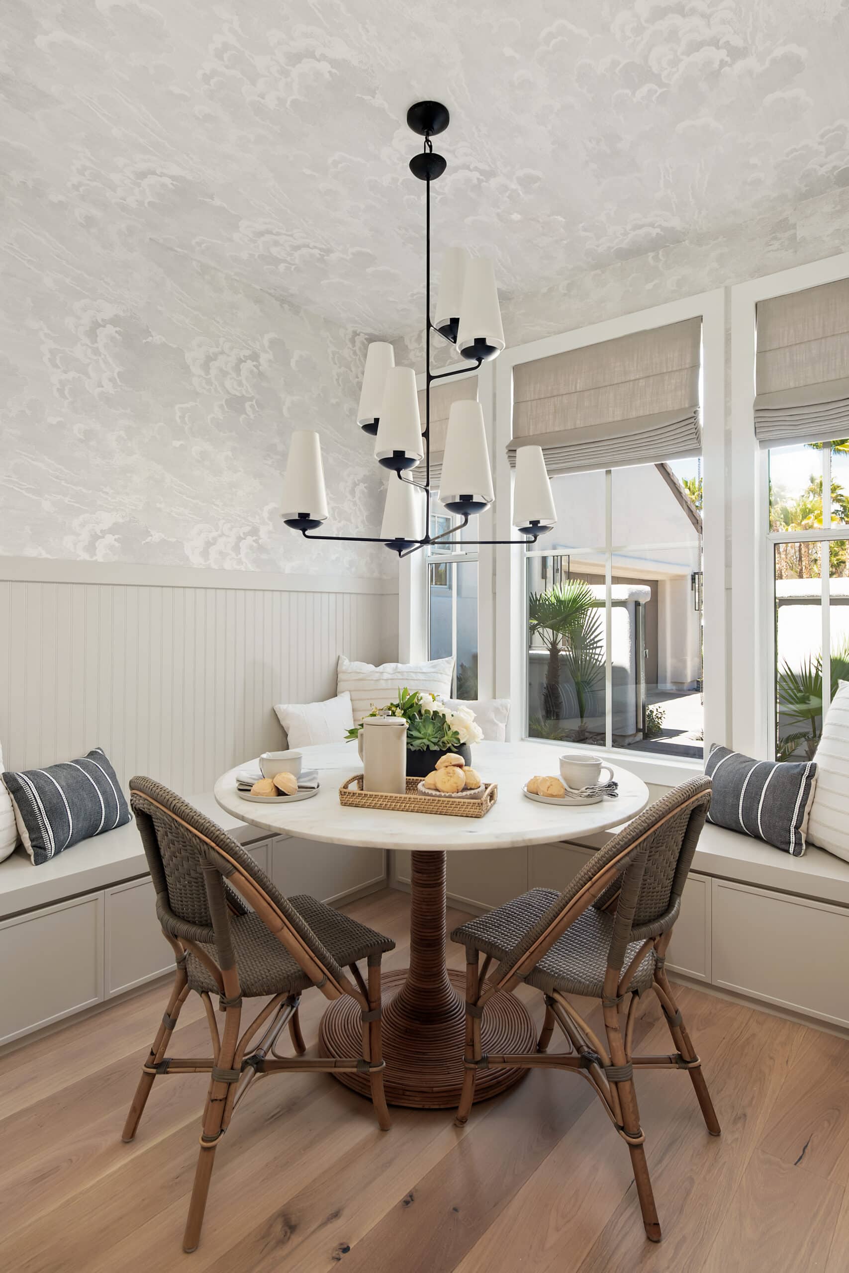 This Red Rock Country Club home underwent a complete, head-to-toe renovation with incredible attention to detail. We swapped the living and dining spaces, extended the kitchen to include a custom breakfast nook, and transformed a formal playroom into a speakeasy-style bar. The statement entryway truly sets the tone for the rest of the project.
